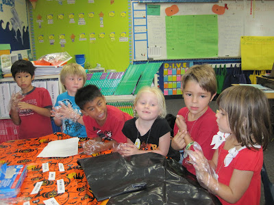AND, can't forget about Beach Bear! Rena earned the reward of bringing Beach Bear home from class to spend the weekend with her. We got out our old costumes and found that Beach Bear looked great as Piglet. He, of course, also went trick-or-treating with us.....